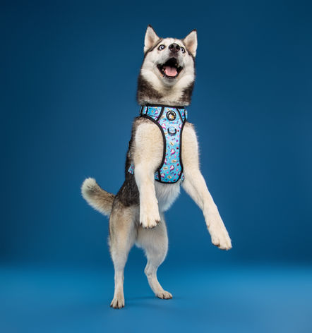 The following images were for a harness company. The client wanted images showcasing the many different harness designs they have while showing the dog's goofy personality.